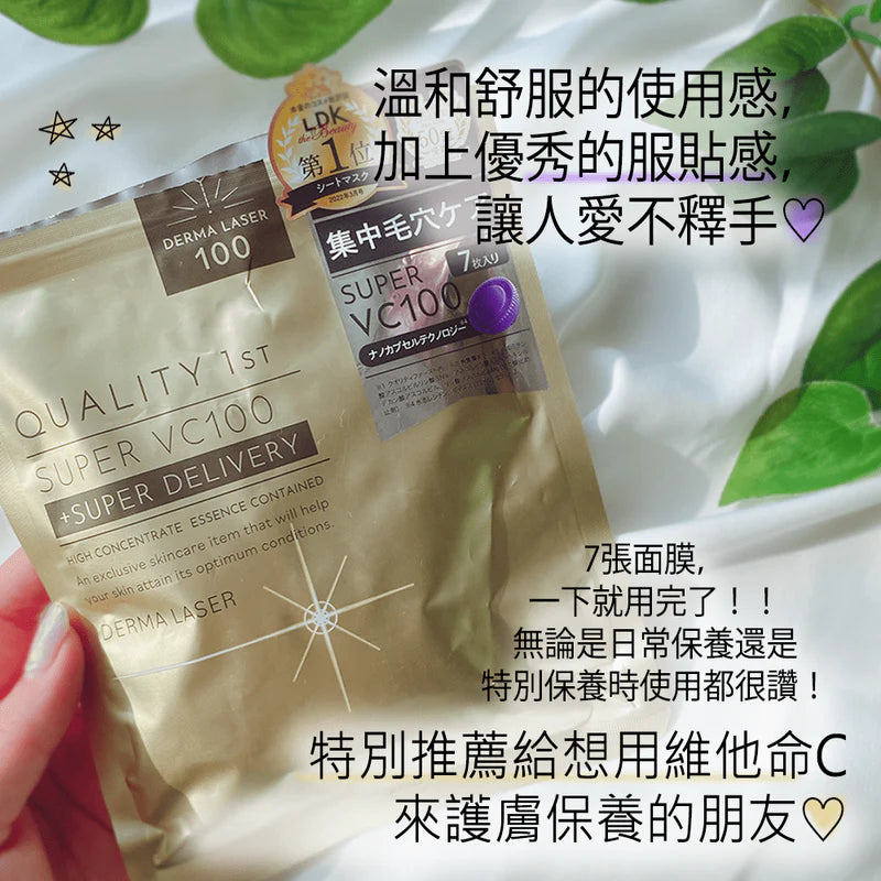 这款Quality First - Derma Laser Super VC100面膜采用尖端技术,提供强效的肌肤护理。专为解决随年龄增长而加剧的毛孔粗大、肤质粗糙及肤色暗沉等问题,为肌肤注入满满的水分,使肌肤变得紧致、清晰,并散发健康光泽。