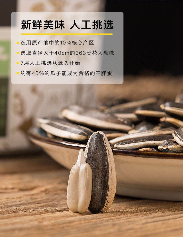 优选原料:精选大粒葵花籽,颗颗饱满,粒粒香脆。