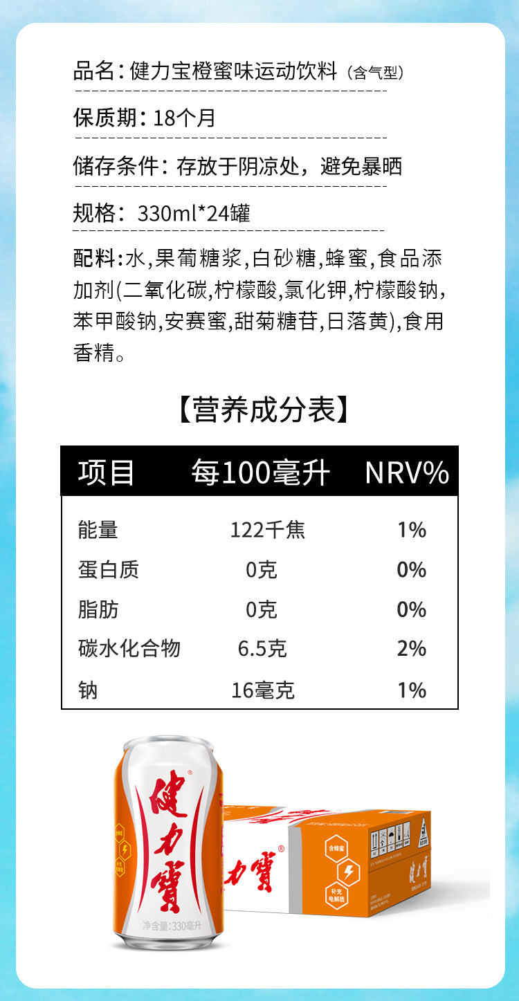 🥤【健力宝】橙蜜味运动饮料(含气型)