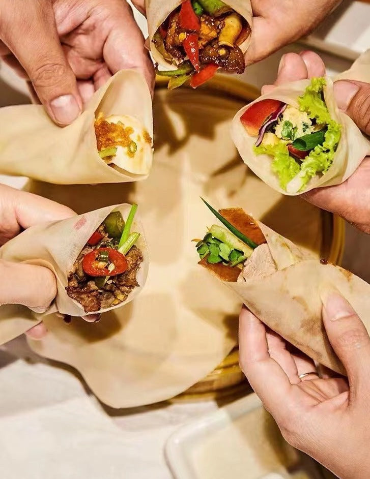 新到北京烤鸭饼皮,也称荷叶饼,小朋友们超级喜。DIY京酱肉丝饼,片皮鸭饼 ,蔬菜卷饼,怎么做都好吃,方便简单。