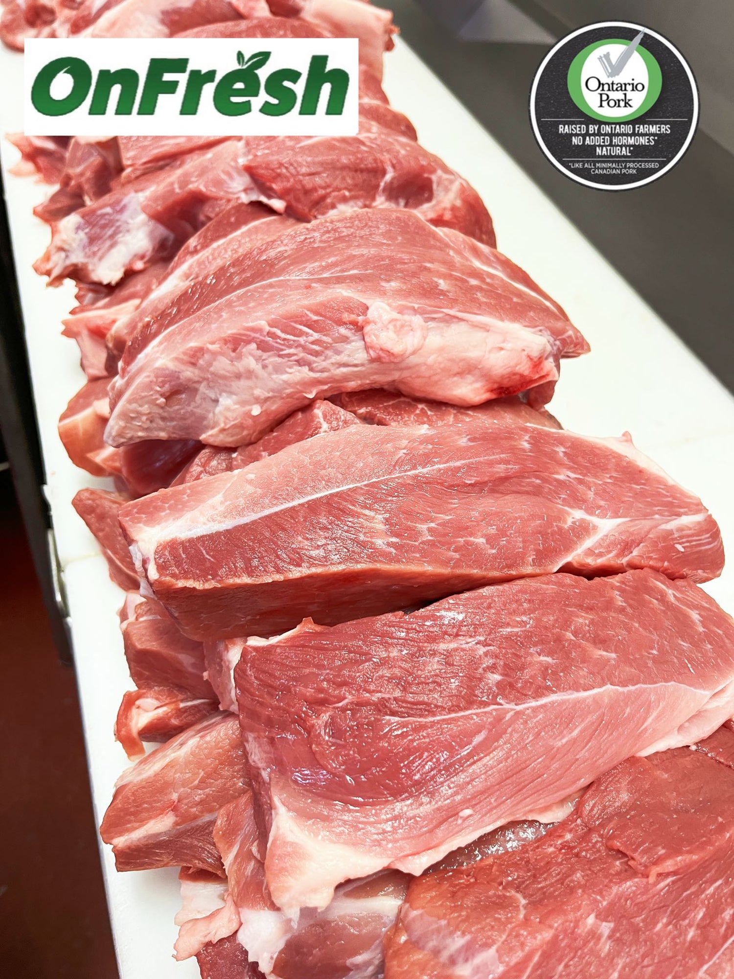 安省本地农场全自然放血猪肉🈚️激素、🈚️添加荷尔蒙、🈚️猪腥味、✅肉质鲜嫩👍烹饪后小时候的味道!🉑️切片炒菜、🉑️水煮肉片、🉑️做任何菜肴!不放料酒也不腥的猪肉!超级嫩!👍