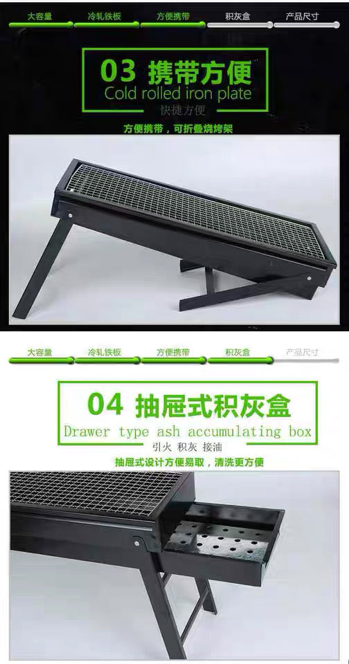 🉑折叠和抽屉设计,让烧烤炉用起来非常简单 ,只要往地上一放,就可以开干了 ,两侧多孔位的设计促进烤碳的燃烧 ,加快实物快速熟起来,让家人舒心度过野炊😍