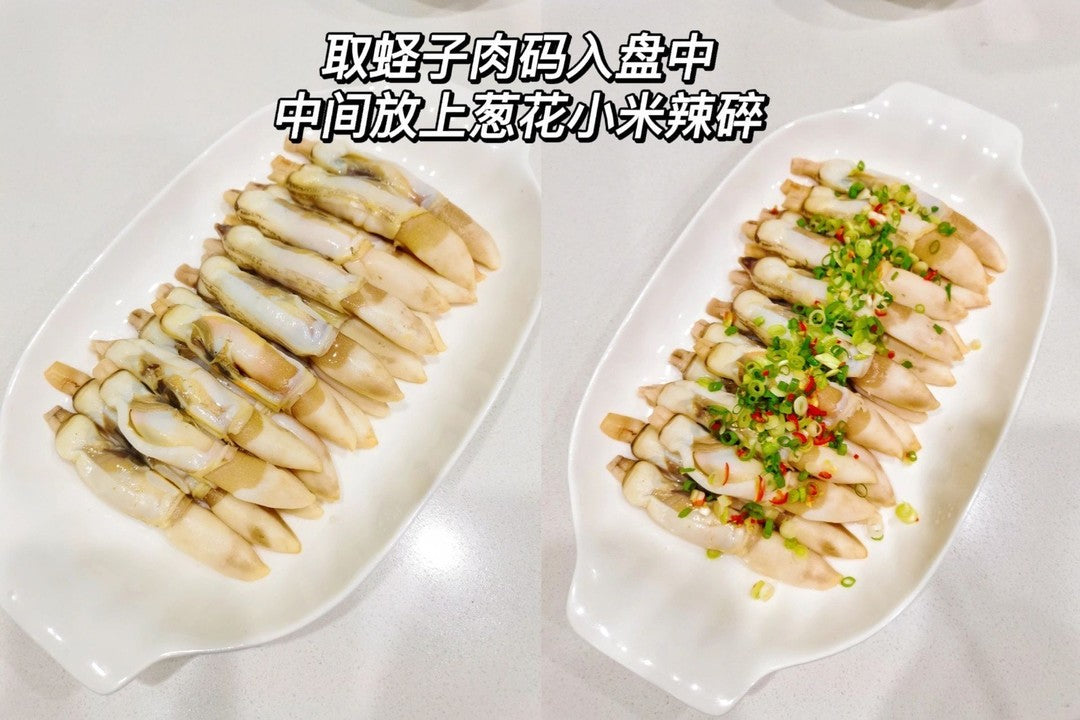 🥗 凉拌蛏肉:搭配蒜蓉、酱油、香醋,口感清爽。
