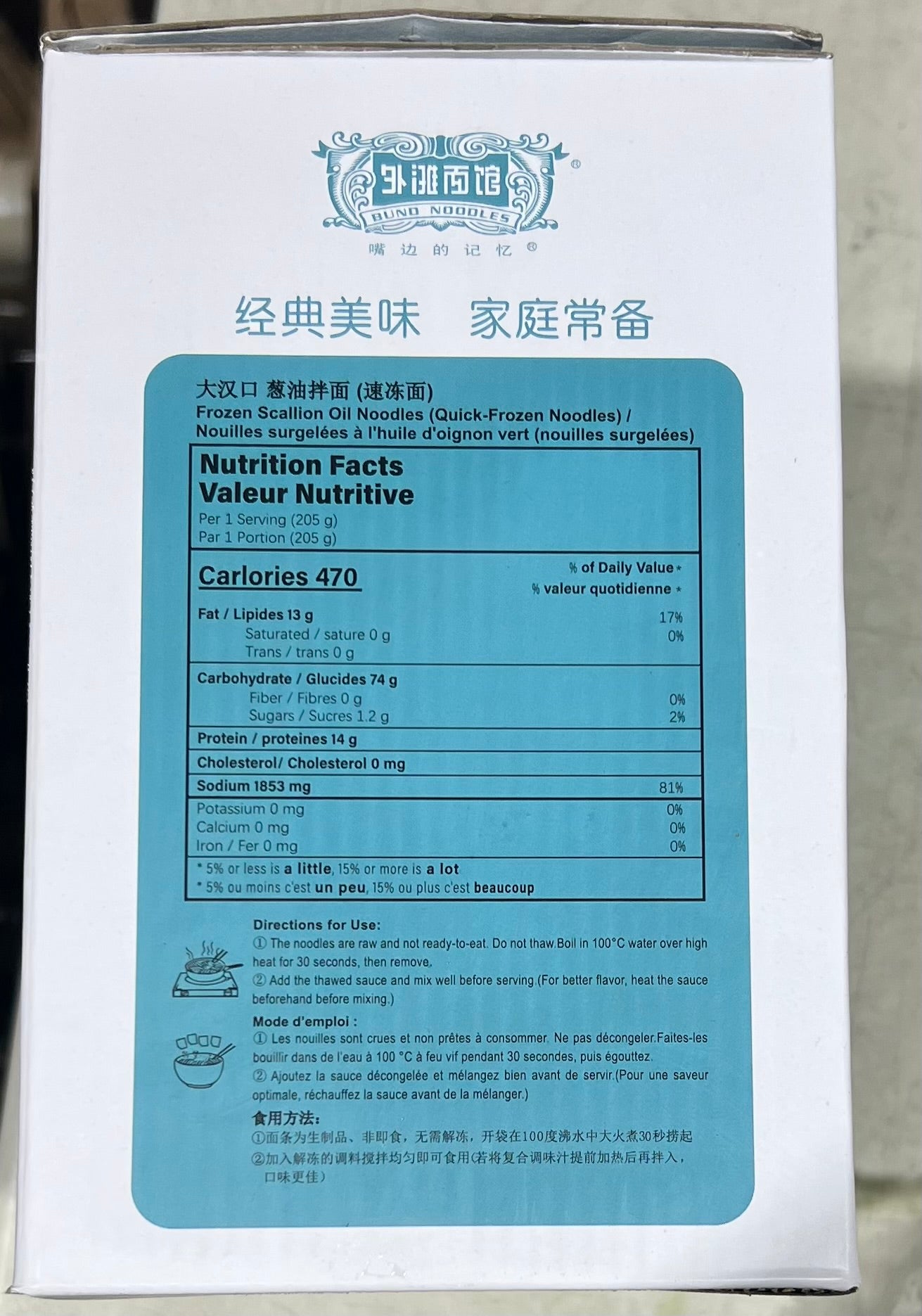 • 食用方便:无需繁琐烹饪,解冻后加热即可,几分钟就能吃到正宗葱油拌面。