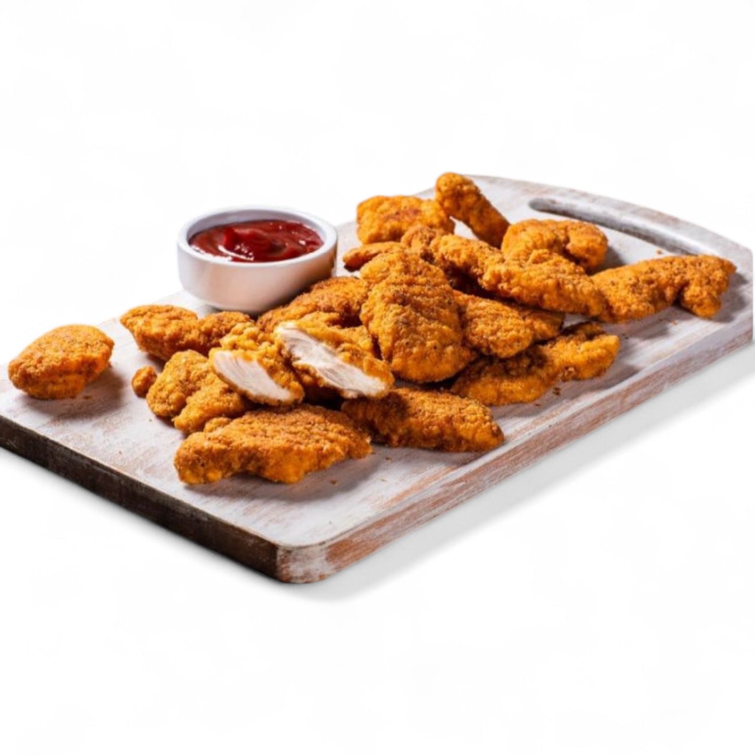 纯鸡胸肉制作的,完全不同于市场上用碎肉压制的便宜chicken nuggets