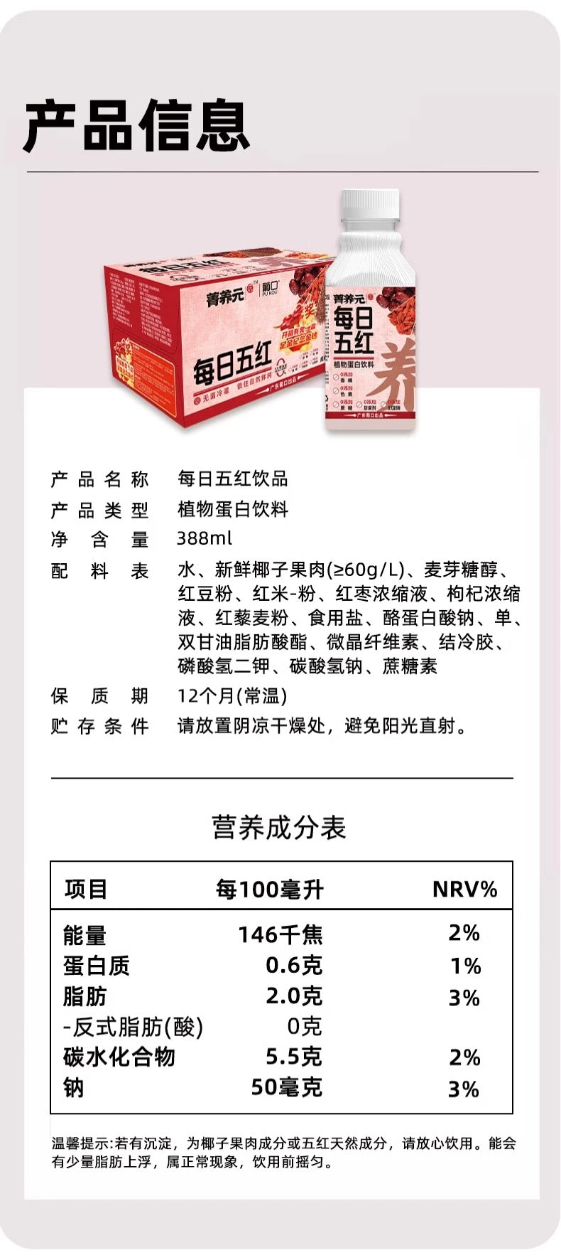 【菁养元】每日五红 植物蛋白饮料 388ml*15
