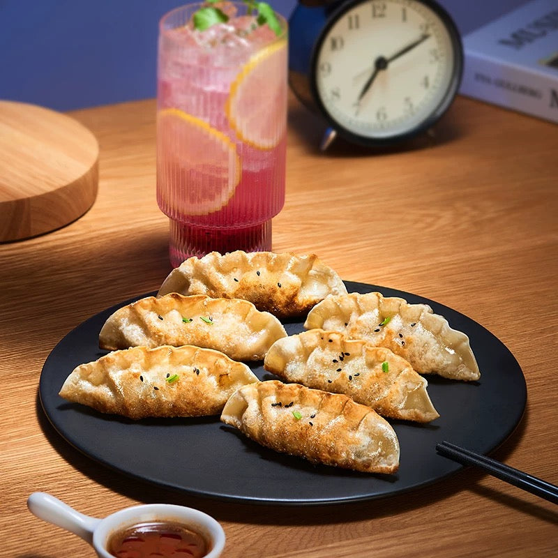 ✅ 锅中加油轻轻一煎,底壳酥脆、饺皮Q弹!