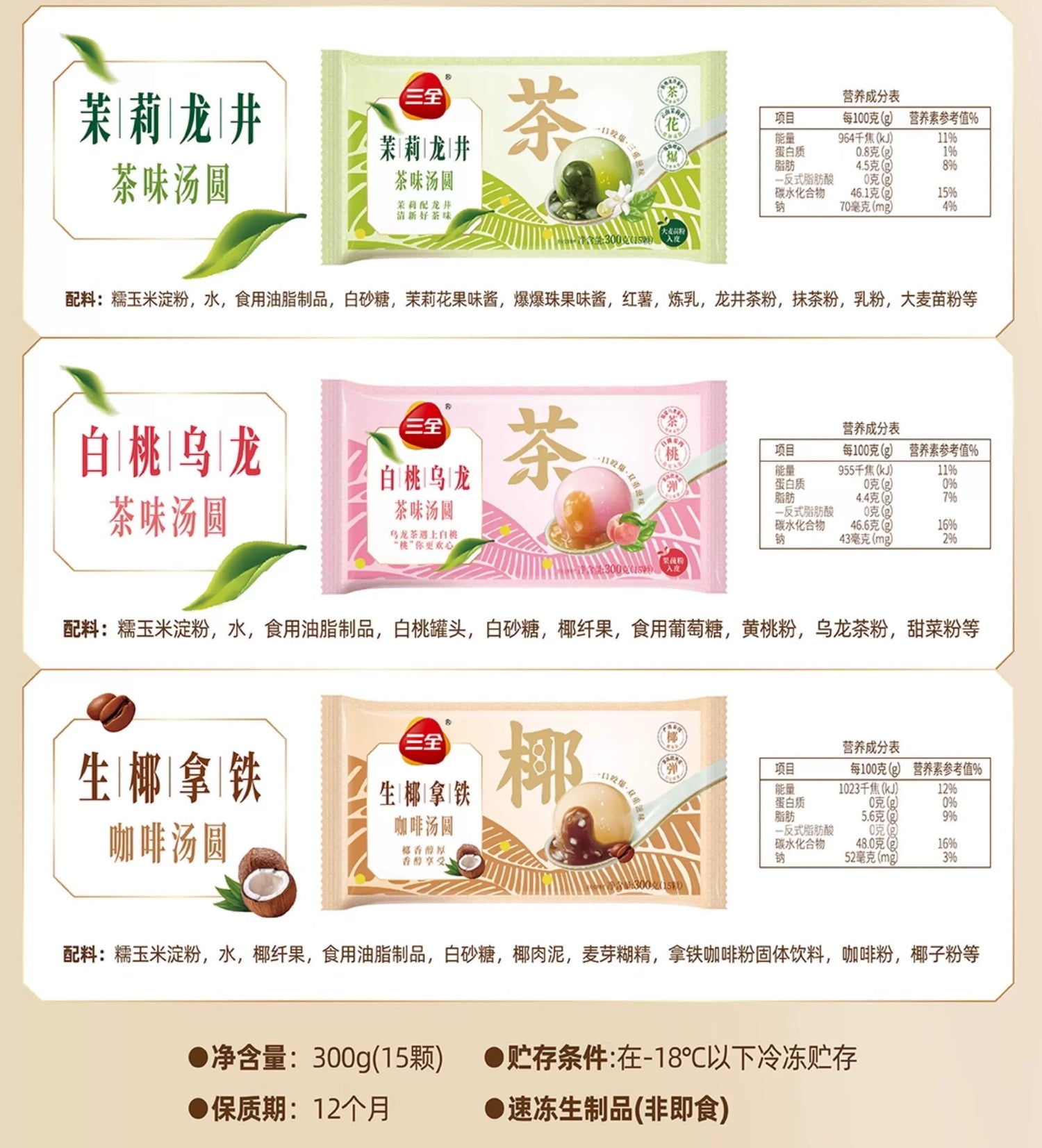 “三全茉莉龙井茶味汤圆——清茶一盏,甜点一碗,刚刚好。” 🍵🍡✨