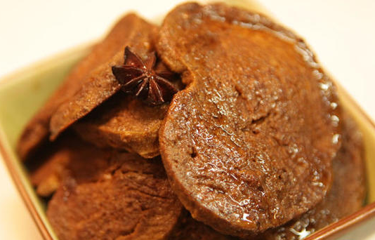 口感:外皮微焦,内部软糯,酱香浓郁,色泽红亮。